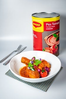 6Add in the chicken drumsticks, tomatos, spices and MAGGI Tomato Ketchup. Simmer for 20minutes or until chicken drumsticks are cooked.