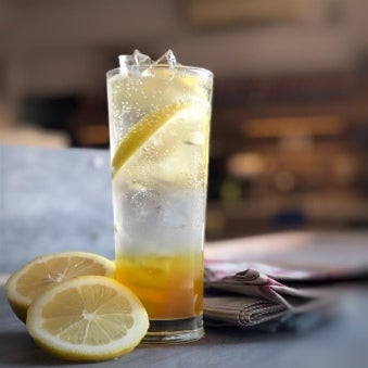 Resfreshing and fizzy mango peach soda with a touch of lemonade